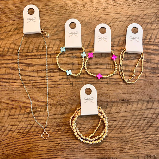 Gold beaded cross bracelet