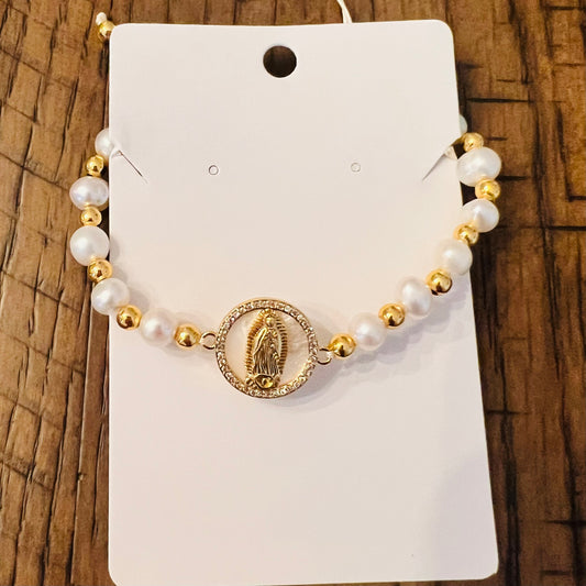 Virgin Mary Pearl and gold bracelet