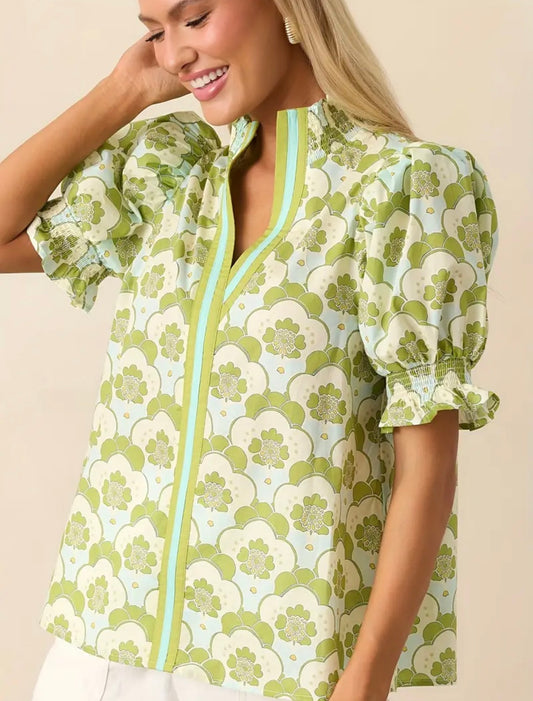 Chartreuse mock collar blouse