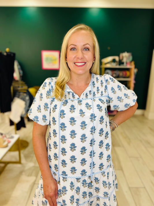 Mardi Jester Short Sleeve Button Up Sleep Shirt White/Multi -Asst.: Small