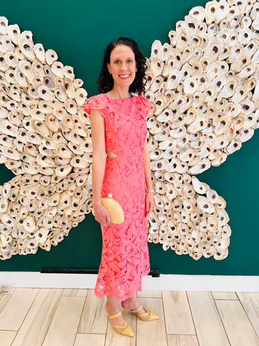Adelyn Rae: Portia 3D Lace Cap Sleeve Midi Dress: Coral
