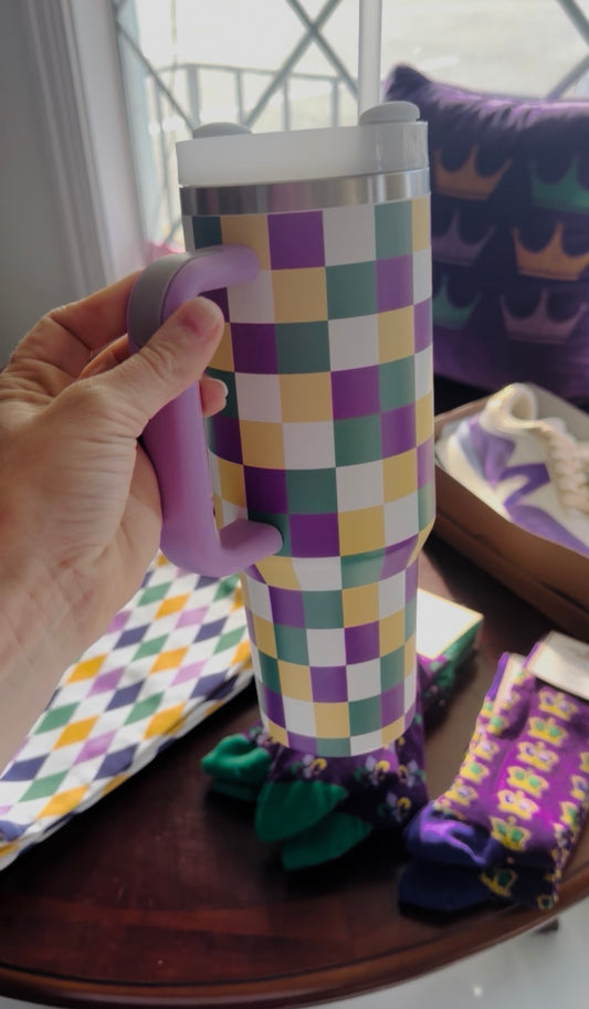 Lavender Mardi Gras Headband with Purple, Green, and Gold Rhinestones