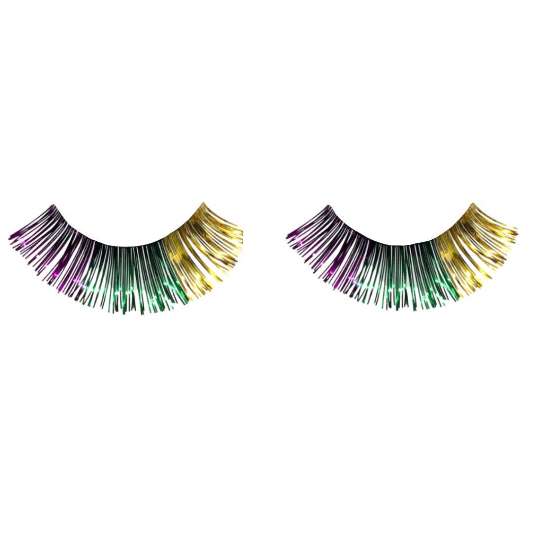 Vibrant Mardi Gras Colors: These eyelashes feature bold hues of purple, green, and gold, perfect for adding a festive touch to your Mardi Gras costume.