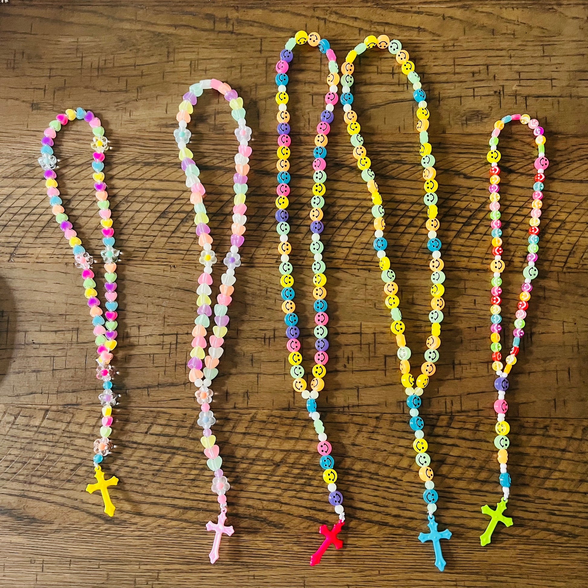 Make praying the rosary Fun for kids with these happy and colorful Glow in the Dark Rosaries!
