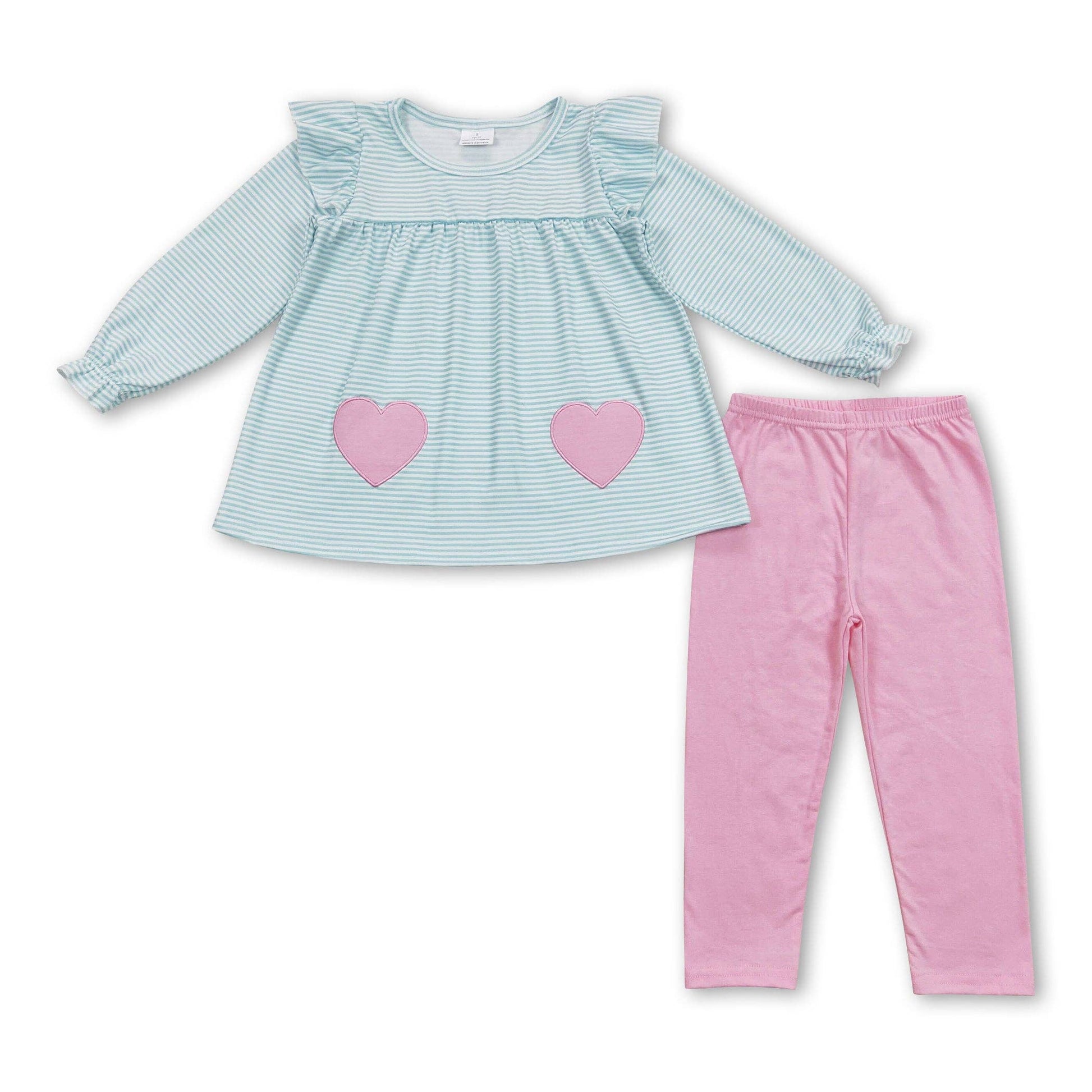 Stripe pink heart tunic leggings girls valentines clothes: 4T